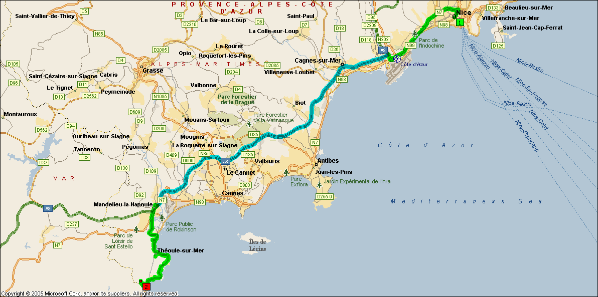 igennem Theoule-sur-Mer er der ca. 10 minutters
